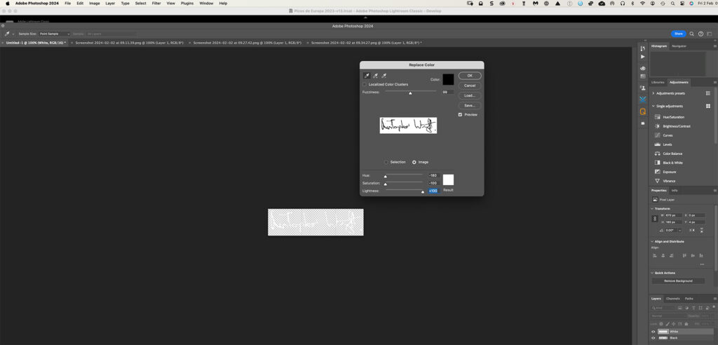 you now have a signature on a transparent background that you can import into PhotoLab or Lightroom.