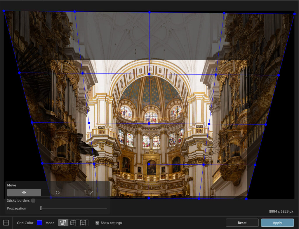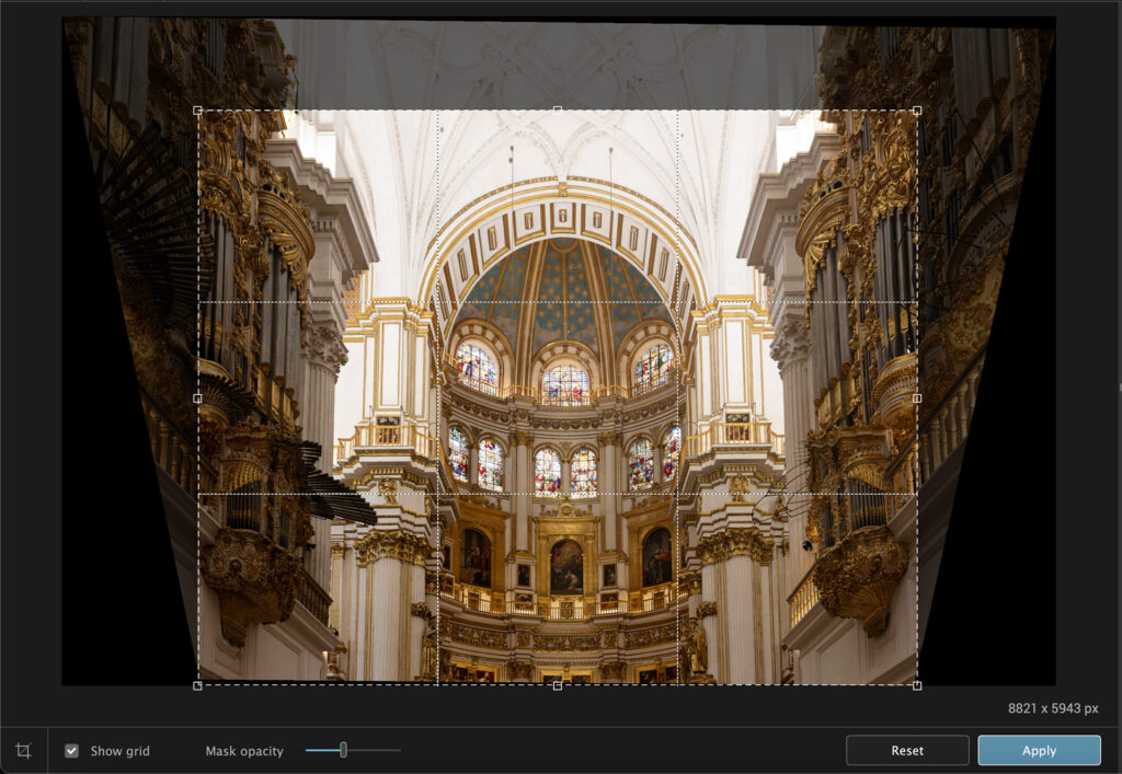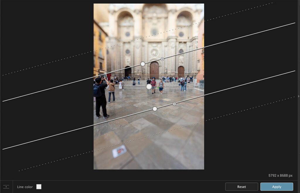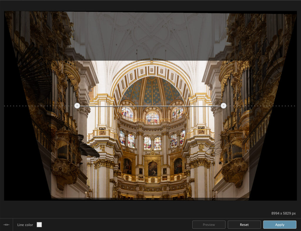 In the type of image we have here this would most likely be used to correct an actual flaw in the building rather than a lens distortion but in landscape photography this can be used to make mountains higher and steeper than they actually are. A moral dilemma then – like artificial intelligence, how much of this type of “correction” is permissible in a landscape photograph?