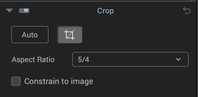 The Crop Tool works in exactly the same way as the Crop Tool in Lightroom, Photoshop, PhotoLab etc. Simply choose the ratio you prefer or Unconstrained. You can also create custom rations should you wish to.