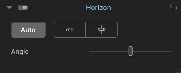 The Horizon tool sets the level of the picture against a virtual horizon. This can be placed horizontally or vertically