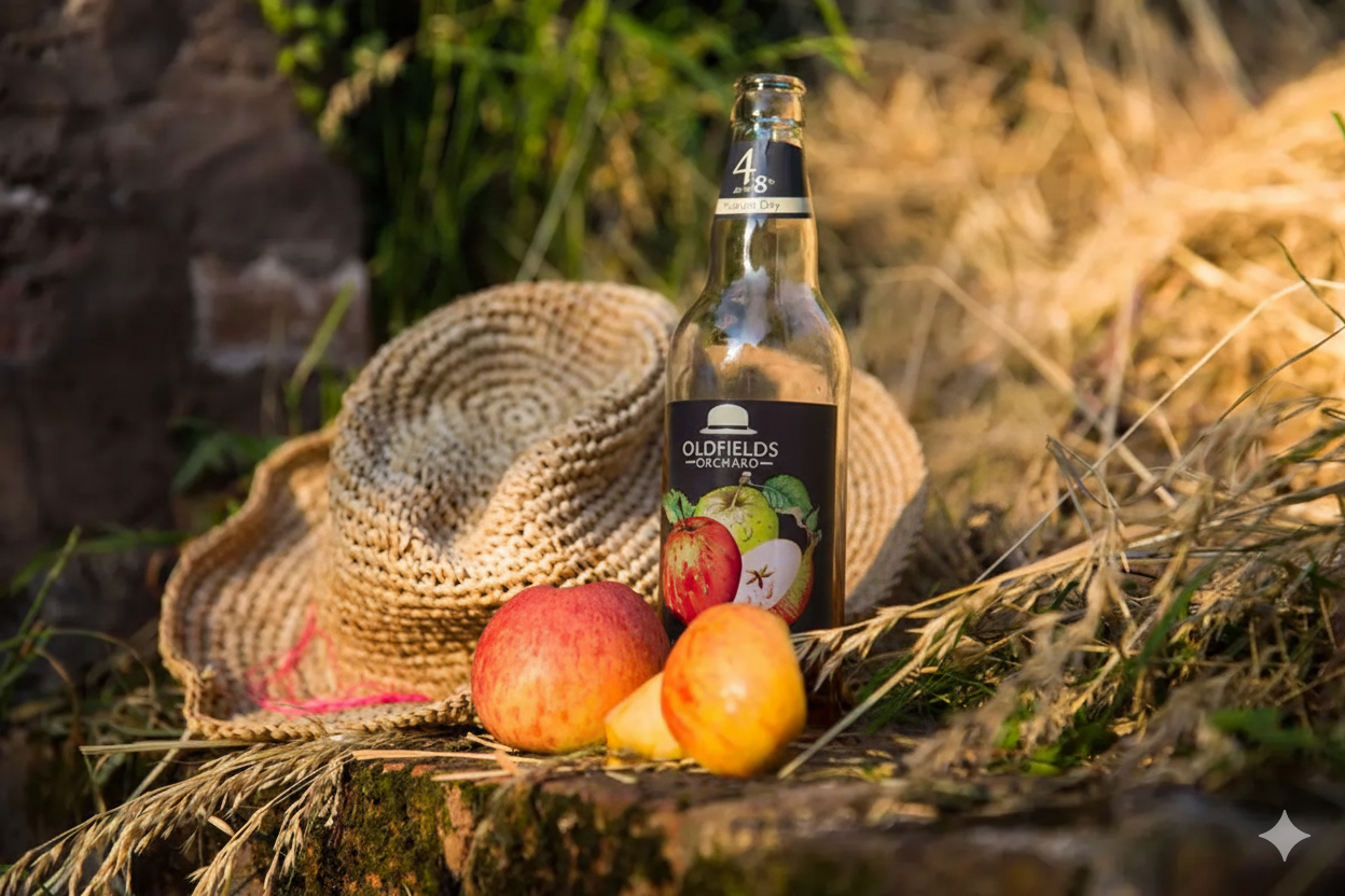 These are human inputs. Putting the bottle of cider in a bucolic setting with apples matching the label and shooting it from below was my idea, drawing on a look I’d developed called rural gothic it draws on the old fashioned view of cider – scrumpy, endless summers, harvest etc. that is part of the English culture. I knew it would resonate.